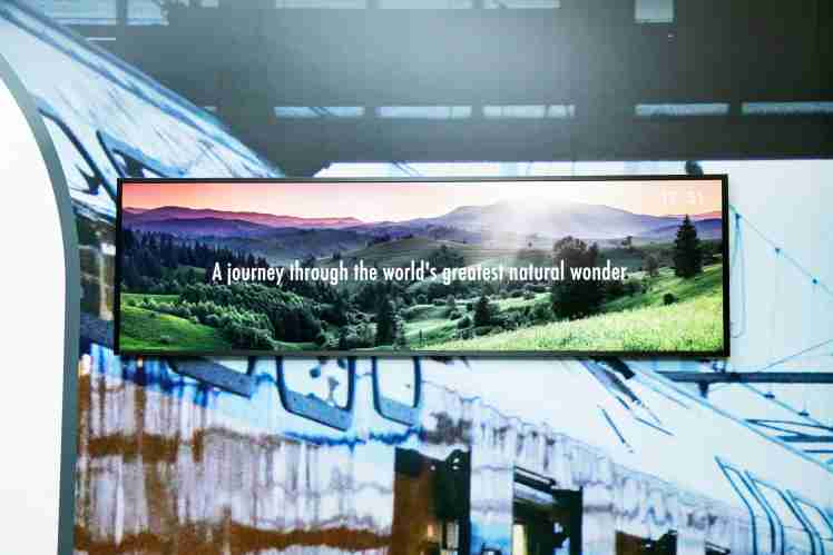 德铁导入达擎 TARTAN 28.6寸面板,,着眼 TARTAN 与众不同的尺寸比例,,能为车厢带来更大的使用效益、、、更出色的观赏体验与更多的设计弹性。。(图片来源:德国铁路公司)