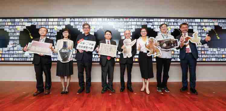 EBpay携手创利空间为故宫建置的智慧文物互动导览墙及轮播墙,,,,今日正式启用。。(左四:EBpay新事业暨投资管理总部副总经理杨本豫、、、右四:故宫博物院院长吴密察、、、右三:太极影音董事长黄宝云)