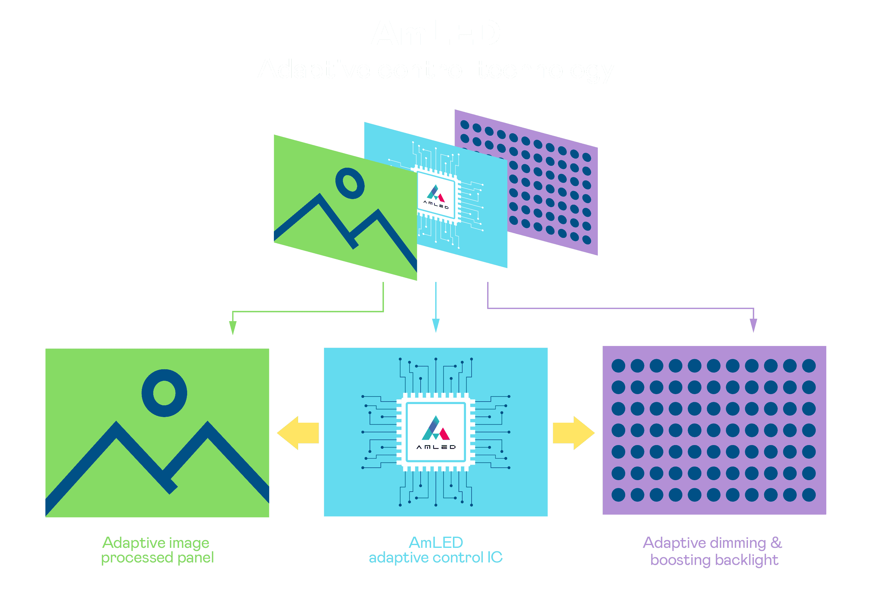 AmLED 具备更省电与低蓝光特性。。与一般的 LED 背光显示技术相比,,由于 AmLED 常时处于局部调光状态,,,其功耗仅有前者的 50% 左右,,,,同时 AmLED 还具备低蓝光特性,,满足长时间使用的护眼需求。。